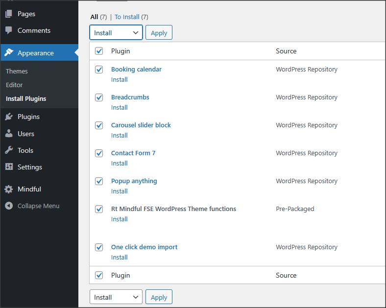 Upload „mindful.zip“ file to your WordPress dashboard and activate theme.