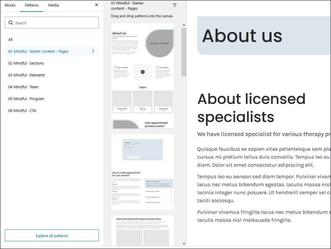 This is documentation for "Mindful - Psychotherapy FSE WordPress Theme".