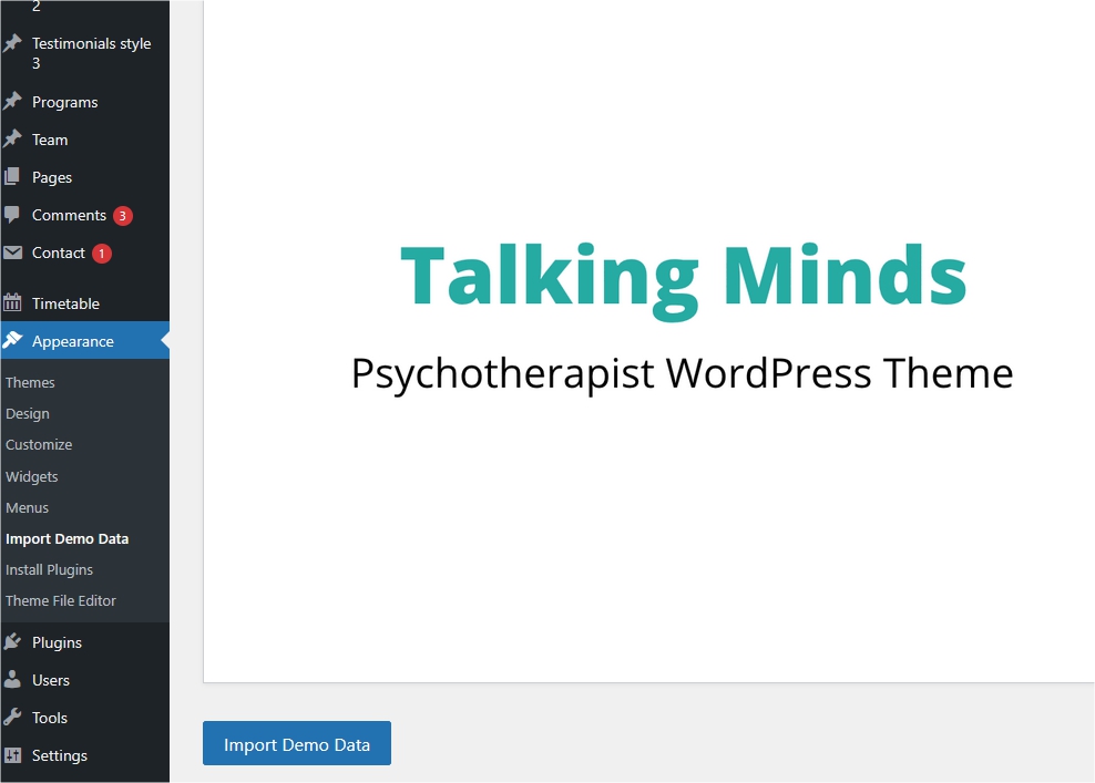 This is documentation for "Talking Minds - Psychotherapist WordPress Theme".