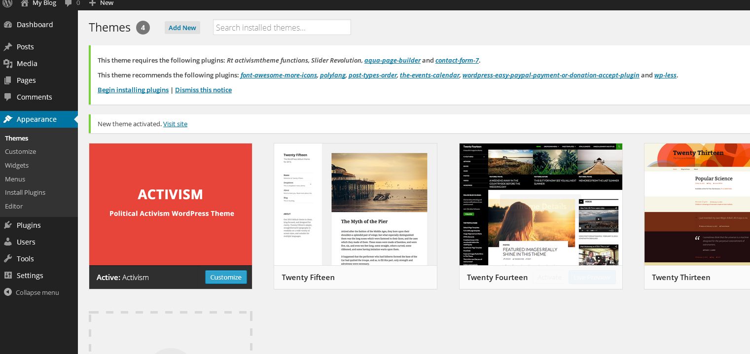 4. Activate "Activism" or "Activism child theme"
