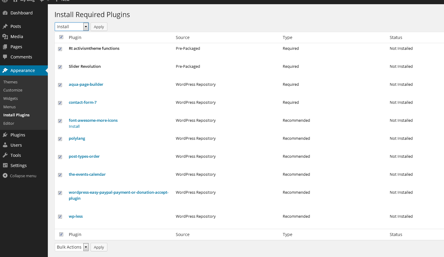 3. Install and activate all recommended and required theme’s plugins