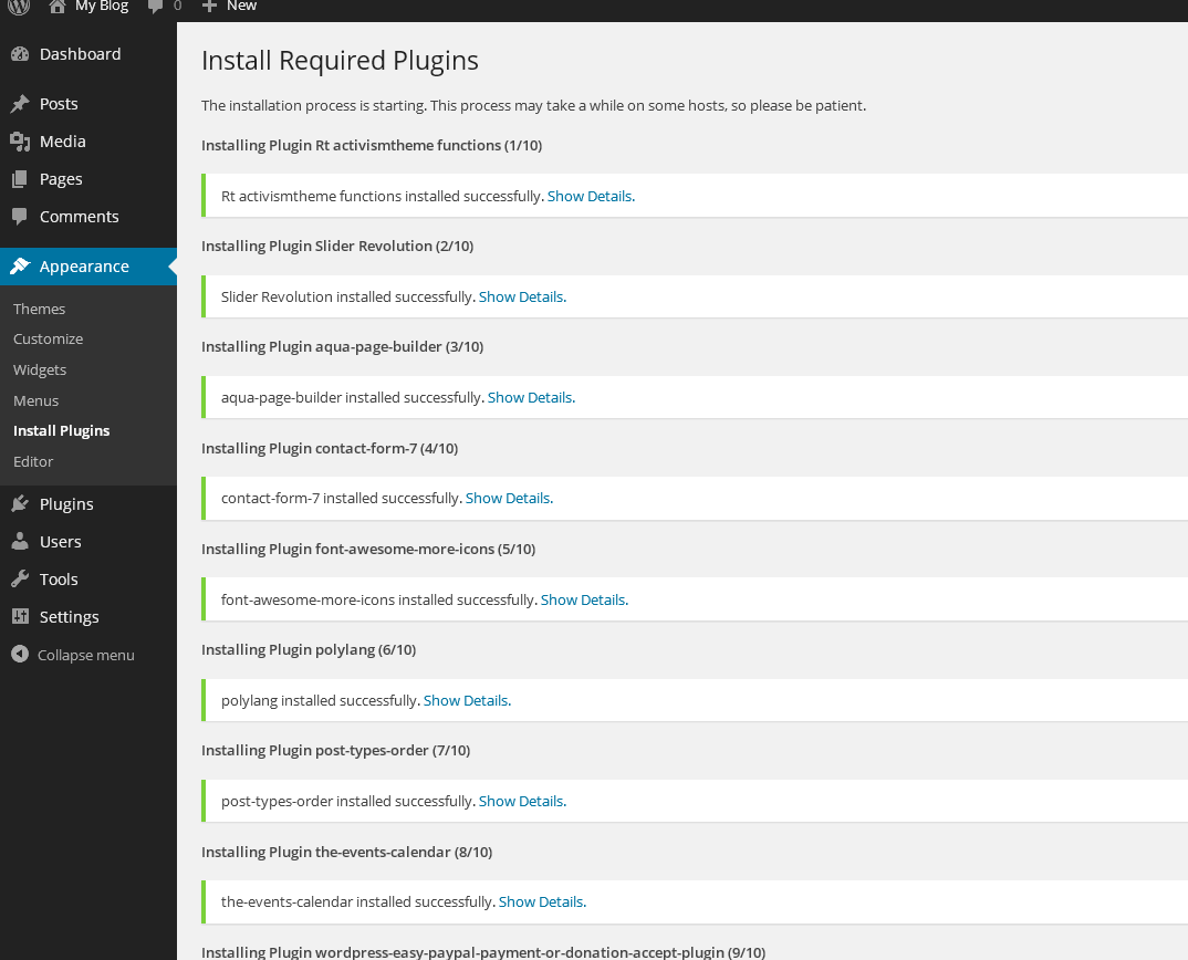6. Activate all other plugins recommended and required by theme