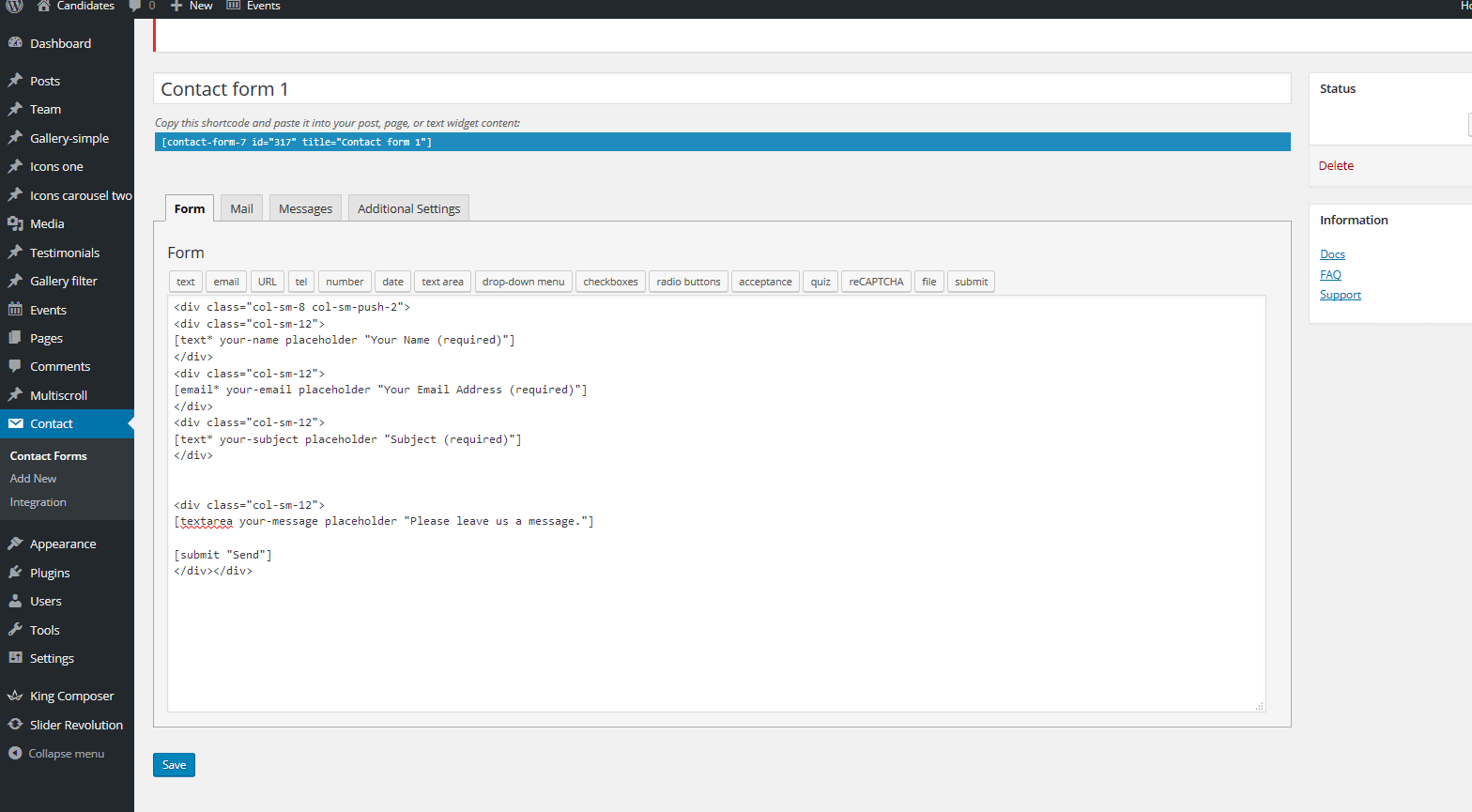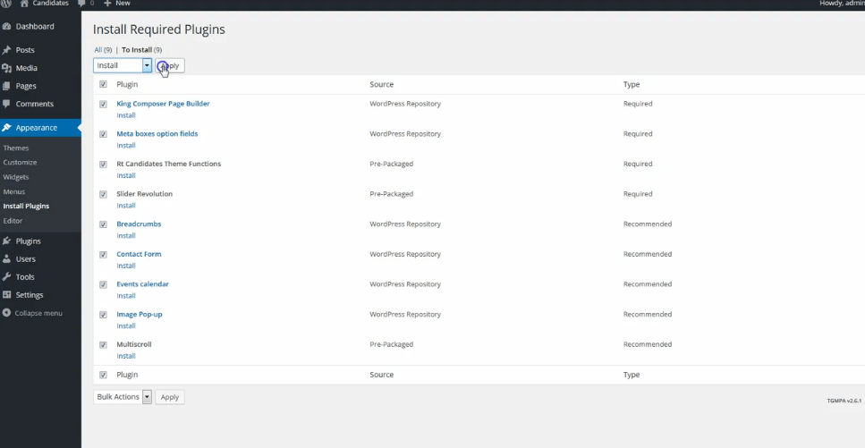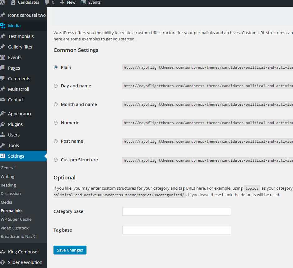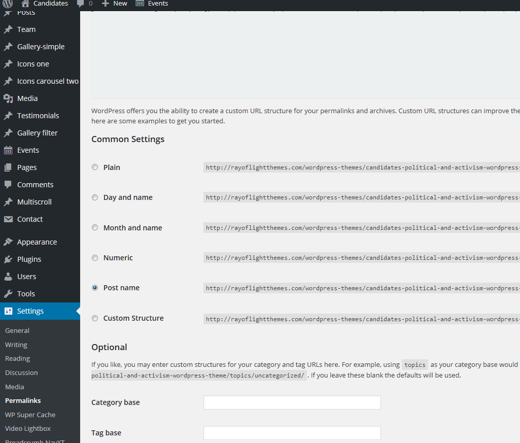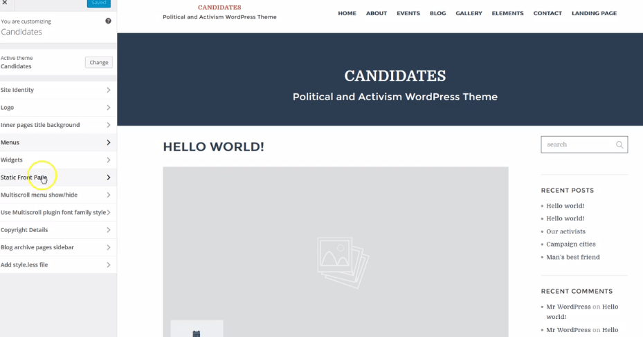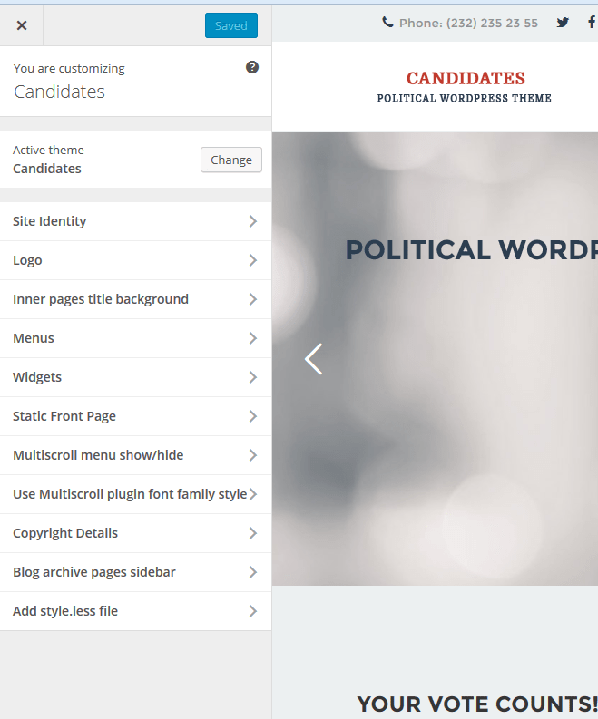 - This is documentation for "Candidates - Political and Activism WordPress Theme". Documentation consists of sections. Every section explains specific part of theme or functionality. List of sections is in left side of screen.