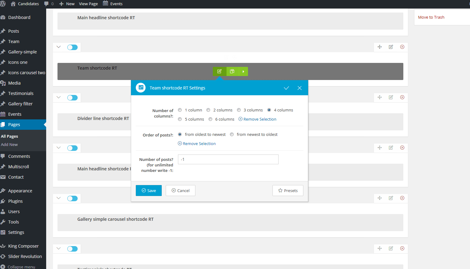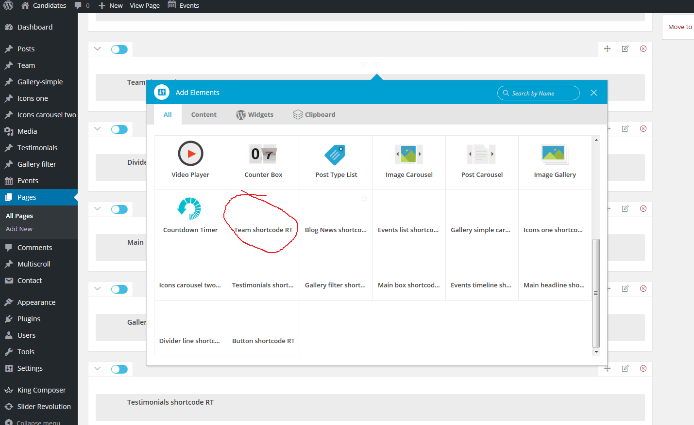 - To have team posts carousel appears on pages, use page builder element "team shortcode RT" and it's settings.