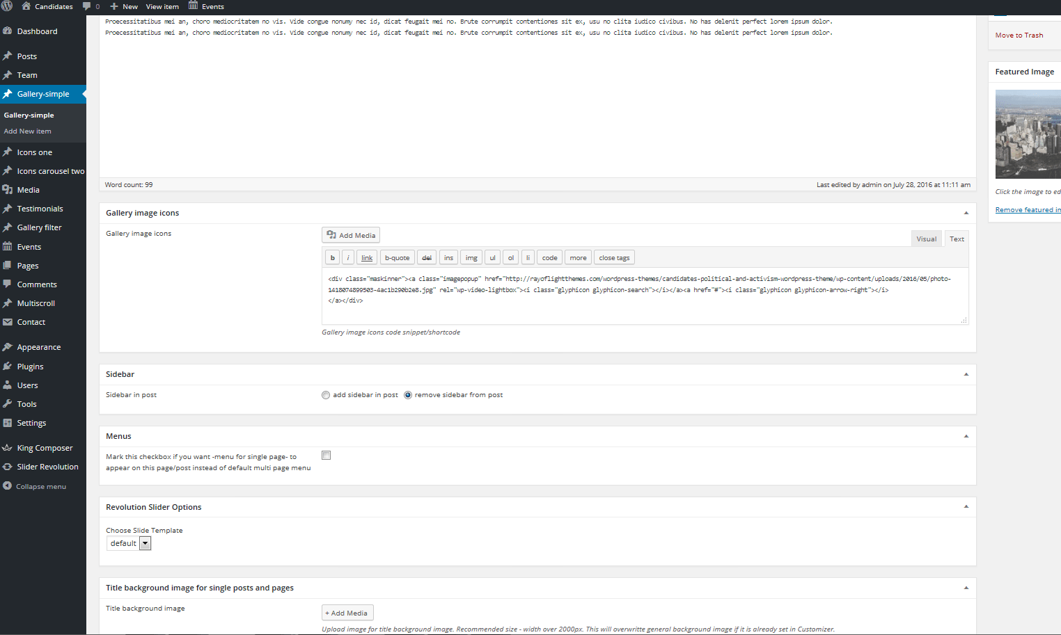 - "Gallery simple" is theme specific custom post type. (code for "gallery simple" and other custom post types is in rt-candidates-theme-functions plugin, that is bundled with theme).