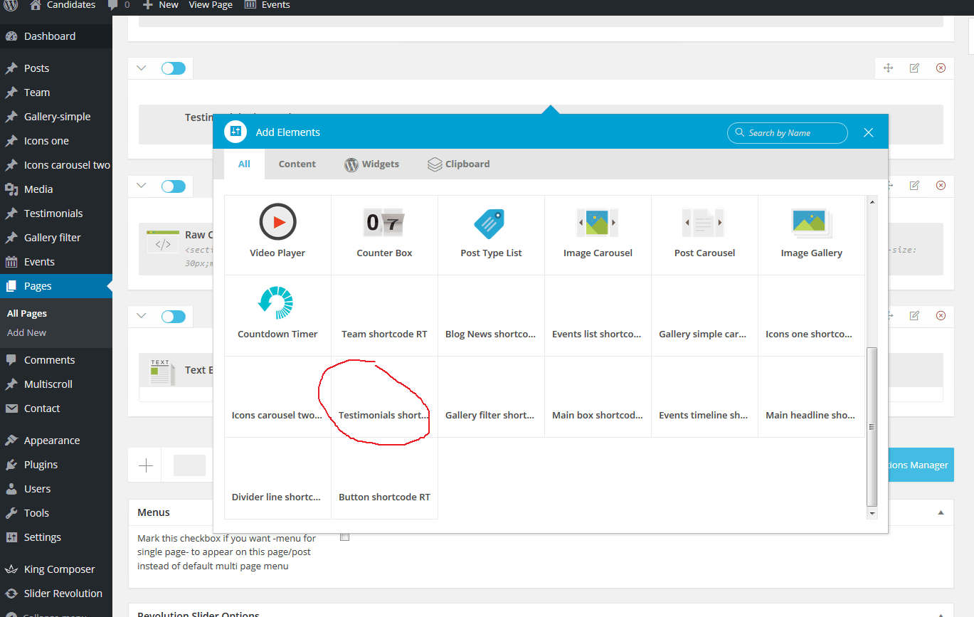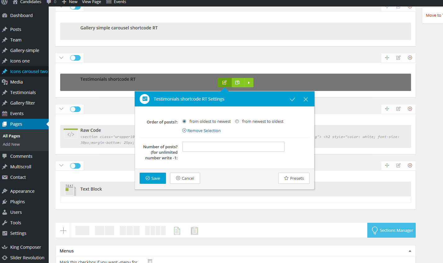 - To have testimonials posts appear on pages, use page builder element "testimonials shortcode RT" and it's settings.