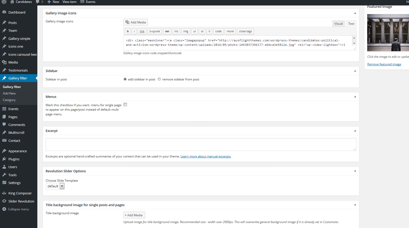 - "gallery filter" is theme specific custom post type. (code for "gallery filter" and other custom post types is in rt-candidates-theme-functions plugin, that is bundled with theme).