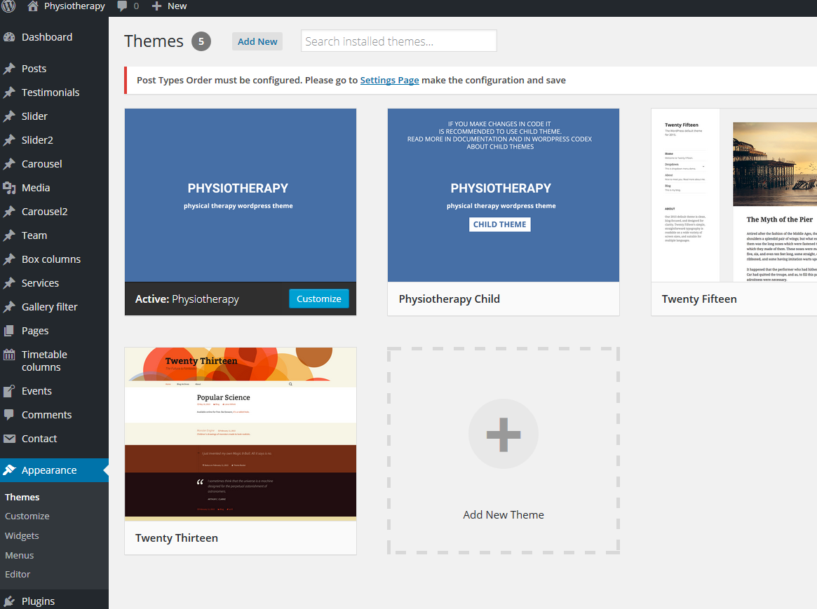 4. Activate "Physiotherapy" or "Physiotherapy child theme"