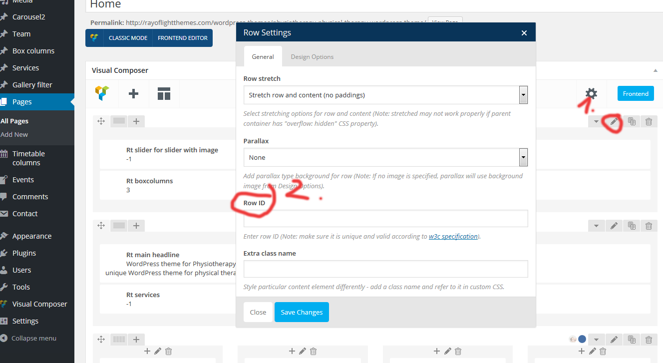 See screenshot to find where page builder row ID is: