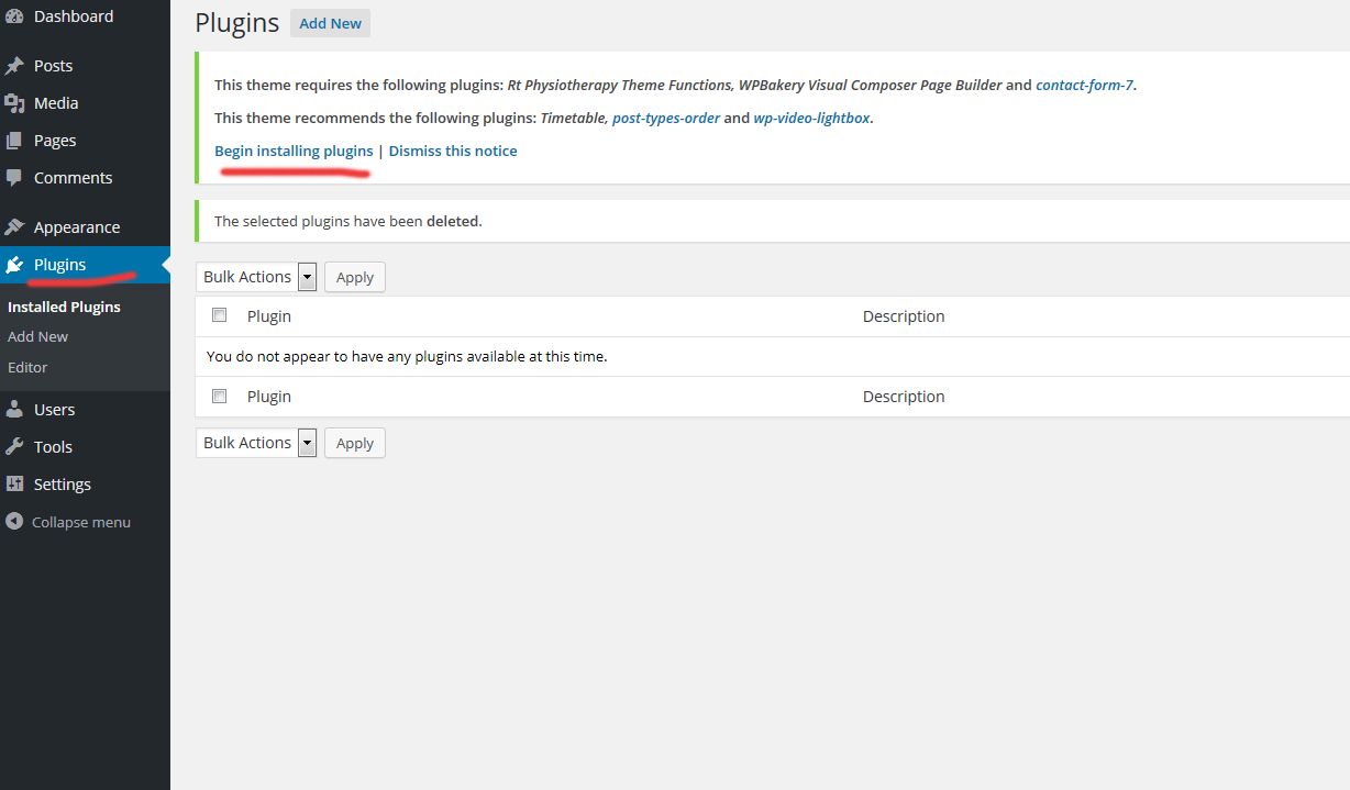 1. Deactivate "Physiotherapy" theme and all plugins