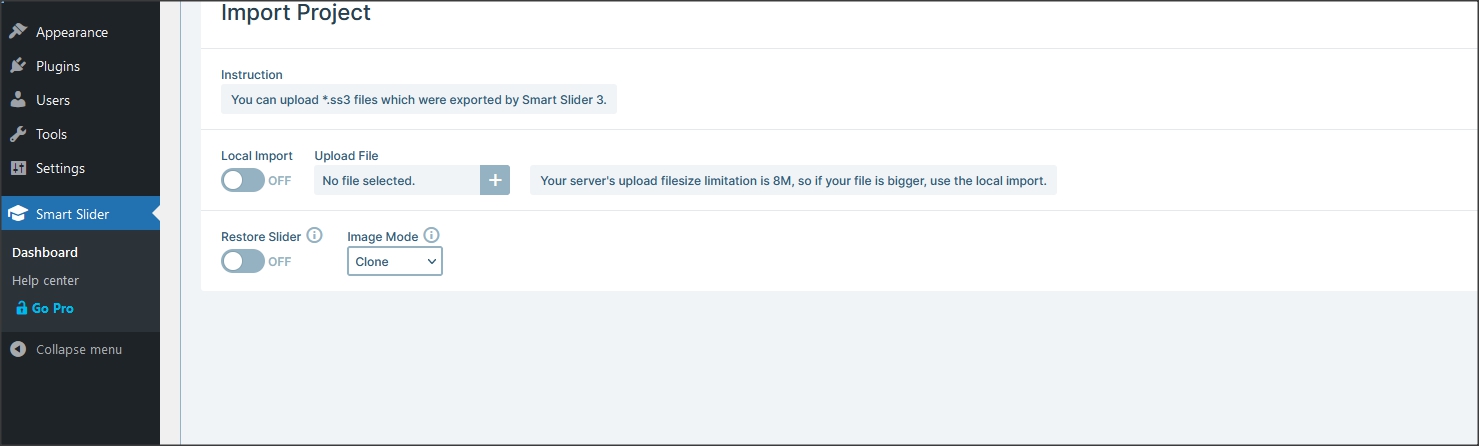 10. Upload demo content slider for Smart Slider 3. Demo slider is "Slider one.ss3" and is in Demos folder. .
