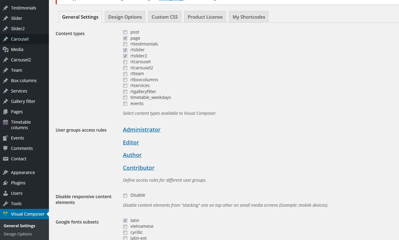 Activate Visual composer for slider custom post types or for any other page/post you want.